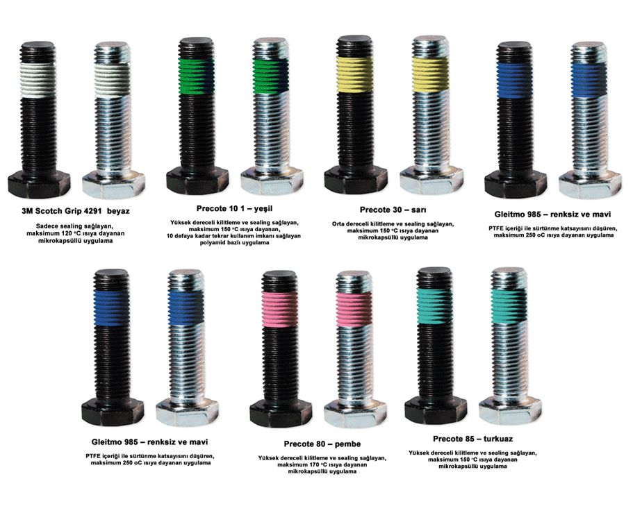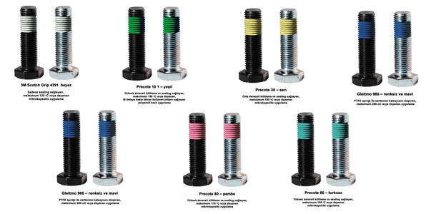 Cıvata Dişleri için Kilitleme/Sealing/Sürtünme Katsayısını Düşürücü Uygulama